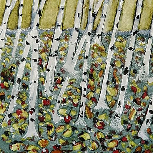 作品タイトルはLehtien Tanssi(舞う木の葉)。白樺の森と色付いた落ち葉が綺麗な作品。シックな色使いがモダンな人気デザインです。